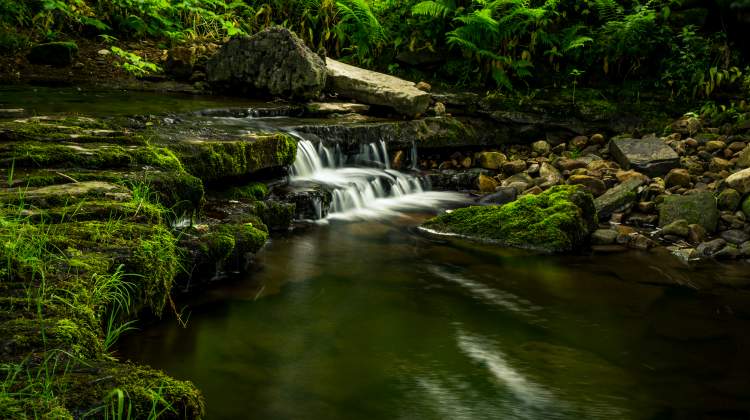Carry on through Lofthouse and take the fork towards Scar House Reservoir. Partway up this road, on the right-hand side, you’ll notice a patch of woodland. Hidden in there is a lovely little waterfall and a series of cascades.