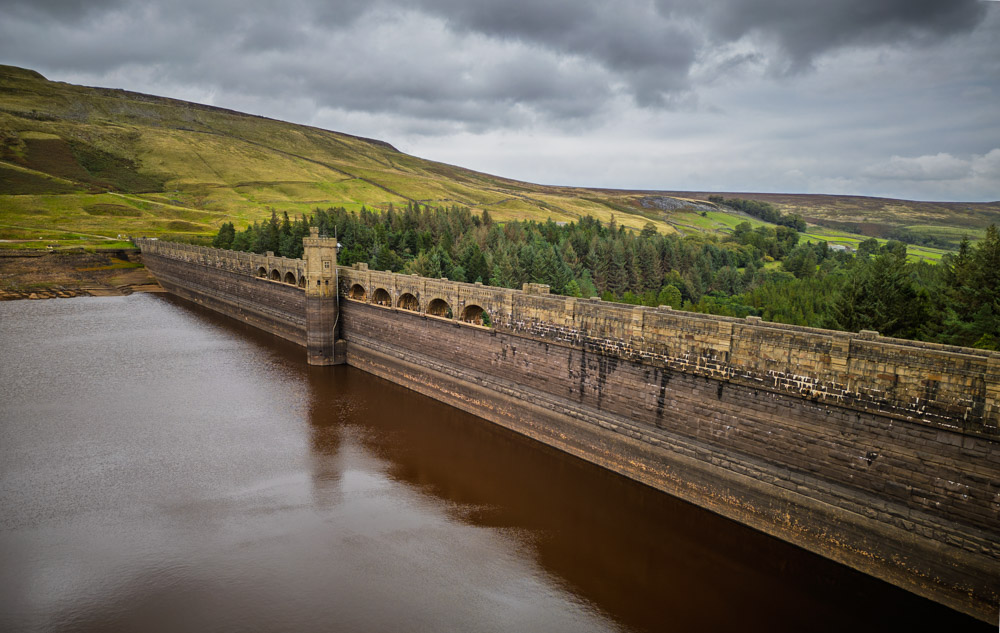 Drive all the way up to the end of the valley and you’ll reach Scar House Reservoir. The dam here is a beast – a huge wall of stone from the early-to-mid 20th century, complete with tower-like features and a dramatic overspill when the water’s high.